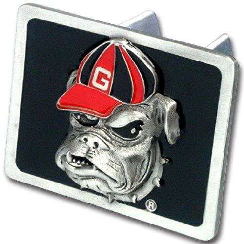 Go Half Time Georgia Bulldogs College Trailer Hitch Cover is hand painted with 3-D carved logo. Includes hardware and fits class II and class III hitches. This cover is enameled on durable, rust-proof zinc.